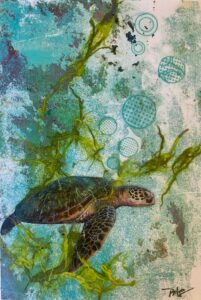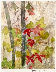 Biography: Pamela Salyer is a Knoxville-based mixed media artist, working with acrylic, image transfer and collage to create multi-layered pieces inspired by the natural world. She comes from a science background, but was able to focus on art full -time after moving to Knoxville in 2015. She has been a juried member of the Art Market Gallery in downtown Knoxville since 2017, and a member of the Foothills Craft Guild since 2023. Her work has been accepted to a number of juried exhibitions including Arts in the Airport at McGhee-Tyson Airport, the Knoxville Arts & Culture Alliance National Juried Exhibition, and the “Big Tiny Show” at the District Gallery. She teaches mixed media workshops at the Oak Ridge Art Center and for the Art Guild of Tellico Village