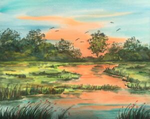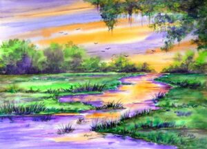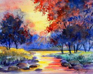 Class Content: Have fun using bright, beautiful colors to paint several landscape paintings with watercolor and/or acrylics. Learn how to create colorful skies, trees, water and reflections using basic painting techniques along with wet-on-wet, negative painting and dry brush. Demonstrations along with individual help will encourage everyone in their own artistic expression.