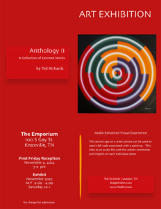 Ted Richards’ art will be featured at the Emporium in Knoxville November 4-22, 2022. The opening reception is November 4 from 5-9 PM.