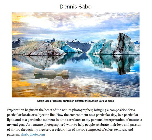 2023 for Dennis Sabo Photography is starting off nicely. One of his favorite compositions from Iceland is included in the Manhattan Arts International “The Healing Power of Nature” online exhibition.